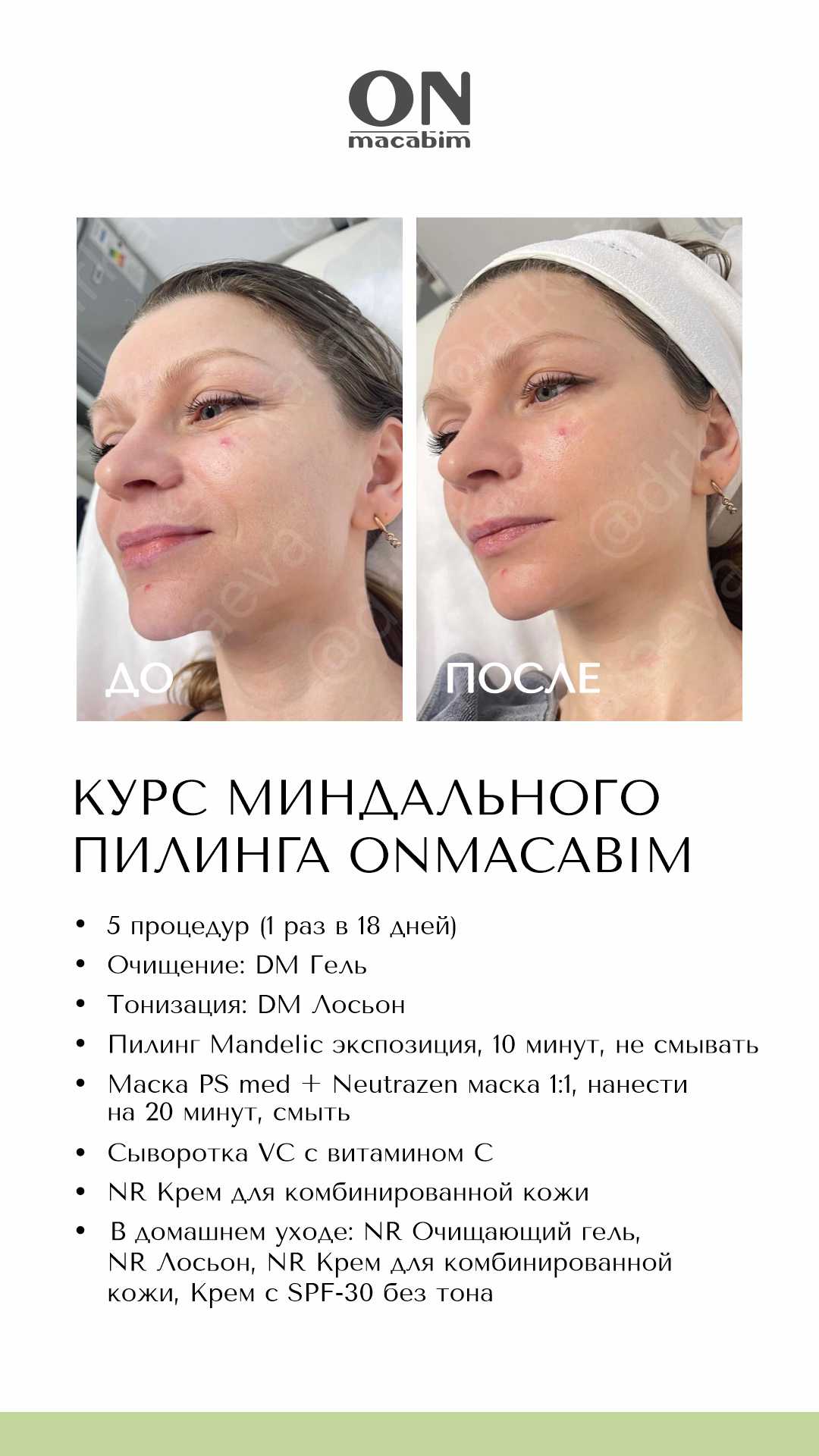 - Ранее проведена чистка лица, 2 миндальных пилинга
